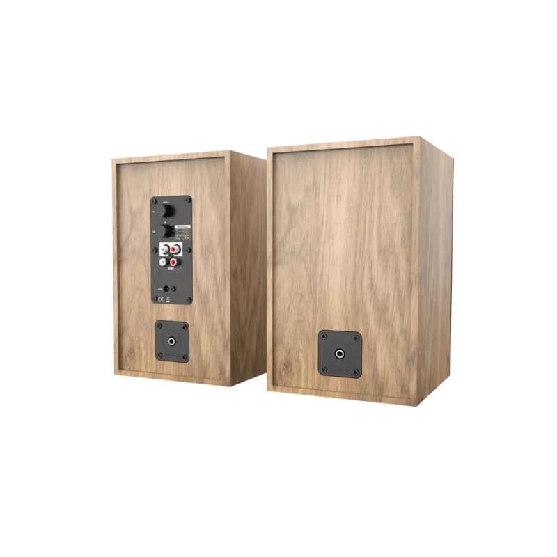 Ohišje zvočnika je izdelano iz MDF plošče in obloženo z visokokakovostnim furnirjem. Posledično so zvočniki videti zelo impresivno in jih je zaradi njihove klasične oblike mogoče uporabiti v skoraj vseh notranjih prostorih. Sprednji del zvočnikov je rešetka iz zvočno prepustne mreže – ki ščiti zvočnike, nameščene v ohišju – 4" gonilnike srednjega basa in 1,25" visokotonce. Ohišje ima bas-refleksni priključek, ki omogoča izpust nabranega zraka iz komore zvočnika. Zahvaljujoč tej zasnovi, ohišje ne zavira sevalne energije hrbtne strani membrane, ampak jo učinkovito uporablja za ugodnejšo reprodukcijo frekvence v nizkem registru. Z eno besedo, zahvaljujoč priključku za bas-refleks dobimo boljše, bolj ojačene in nizke tone. Vrata so bila nameščena na sprednji strani ohišja in to omogoča, da zvočnike premaknete bližje steni ali ohišju, ne da bi to vplivalo na kakovost zvoka.