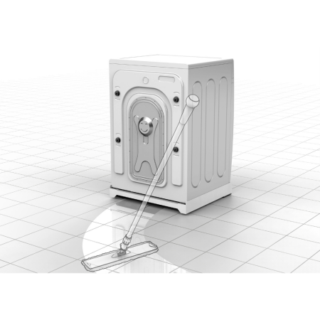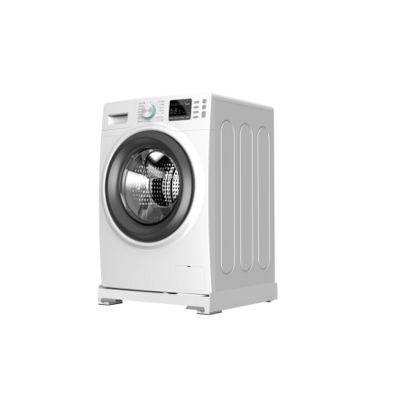 Podstavek za pralni in sušilni stroj s kolesci, zavorami in antivibracijskim sistemom. Sprednje zavorne ročice so idealno postavljene za vgradnjo strojev ali namestitev ob steno.