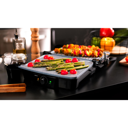 Rock'nGrill 2000 Stone Ceramic Mix&Grill ima dva pladnja za zbiranje maščobe za enostavno čiščenje in sistem za odvajanje maščobe, vgrajen v plošči za priročnejšo uporabo.