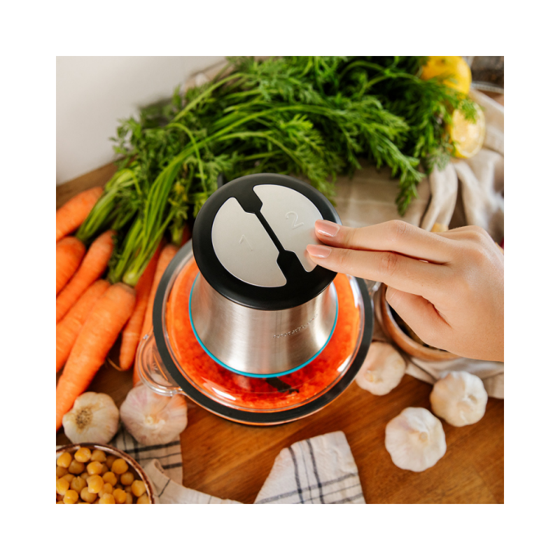 Priročno prilagodite hitrost sekljalnika in izberite med dvema hitrostma, da se prilagodite vsaki vaši jedi.
