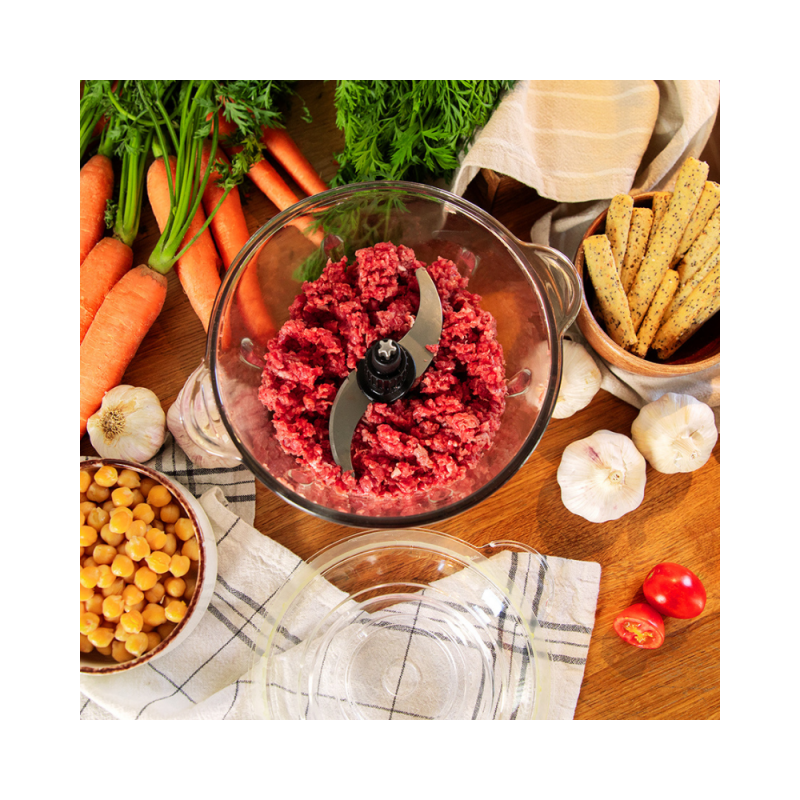 Kompakten električni sekljalnik z močjo 500 W je popoln za sekljanje, rezanje vseh vrst mesa in zelenjave.