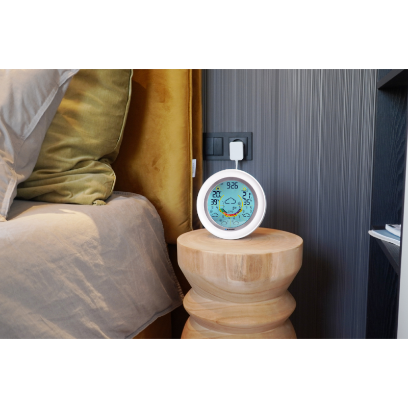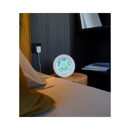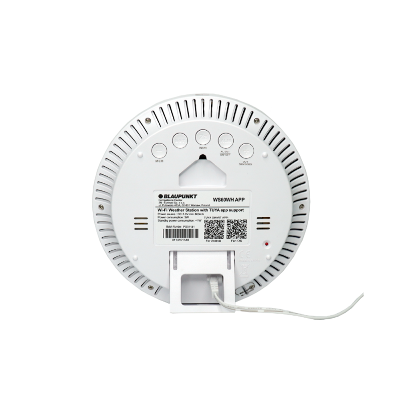 Blaupunkt WS60WH APP je napredna vremenska postaja s funkcijo spremljanja kakovosti zraka. Prepoznavno okroglo ohišje v beli barvi je opremljeno z enobarvnim LCD zaslonom, ki je praktičen in estetsko privlačen dodatek k vsaki notranjosti.