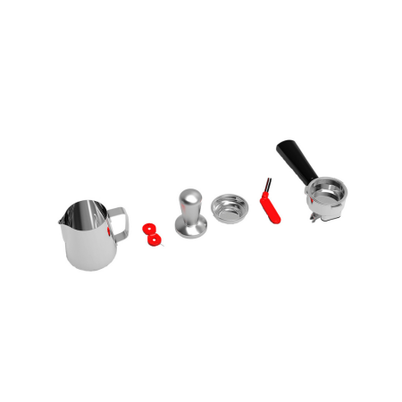 • Dodatki: filter za eno ali dve skodelici kave, pripomoček za poravnavo kave v filtru, 460 ml vrč za mleko, čistilna krtačka in čistilni zatič