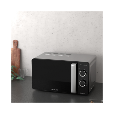Mikrovalovna pečica z žarom Cecotec ProClean 3150, prevlečena z Ready2Clean premazom za lažje čiščenje. Navdušila vas bo tehnologija 3DWave, 700 W v 6 stopnjah moči in 800 W žar. Mikrovalovna pečica ima prostornino 20 litrov in 30-minutni časovnik.