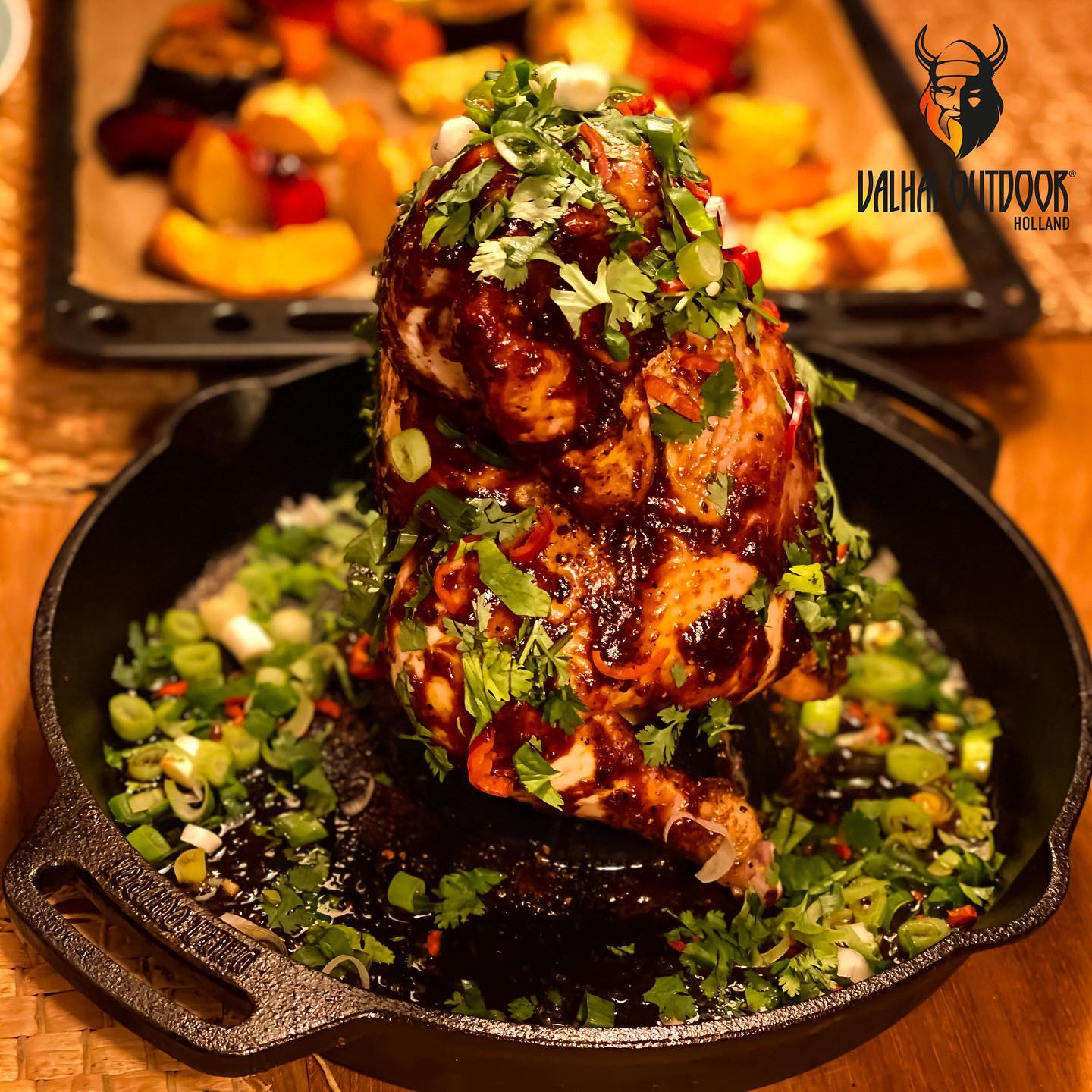 Posoda VH28CS s premerom 28 cm, je namenska posoda za peko celega piščanca. Piščanca postavimo pokonci na posebej oblikovan srednji del, kamor lahko dodate eno čebulo,, zelišča jabolko, hruško ali pomarančo. Vlaga iz zelenjave ali sadja bo dodatno pripomogla k aromi iz sočnosti, medtem, ko bo pičanec popolno pečen. V posodo lahko dodate še krompir in zelenjavo in jo postavite v vsak pokrit žar ali domačo pečico.