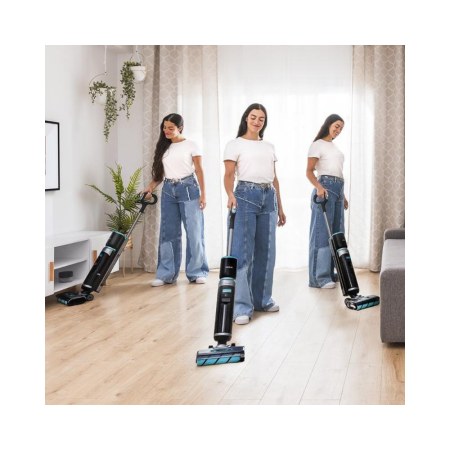 S FreeGo Wash&Vacuum je čiščenje tal nekaj drugega. Njegova moč 200 W je sposobna brez težav sesati trdne snovi in tekočine, drgniti in sesati vodo hkrati, da se bodo vaša tla lesketala.
