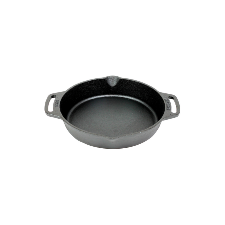 Ponev VH25H s premerom 25 cm in dvema ročajema. Ponev ima na obeh straneh tudi oblikovan rob za enostavno prelivanje omak. Ker je ponev v celoti izdelana iz litega železa, je primerna za vse vire toplote. Zato lahko z njo kuhate na svojem štedilniku v zaprtih prostorih in na žaru ali tabornem ognju na vašem vrtu ali v naravi. Zaradi svoje majhne velikosti je ponev idealna za pripravo in serviranje manjših jedi. Ponev ima klasično obliko, a je kljub temu trdna zaradi vikinške glave Valhal Outdoor na dnu ponve.
