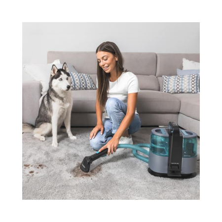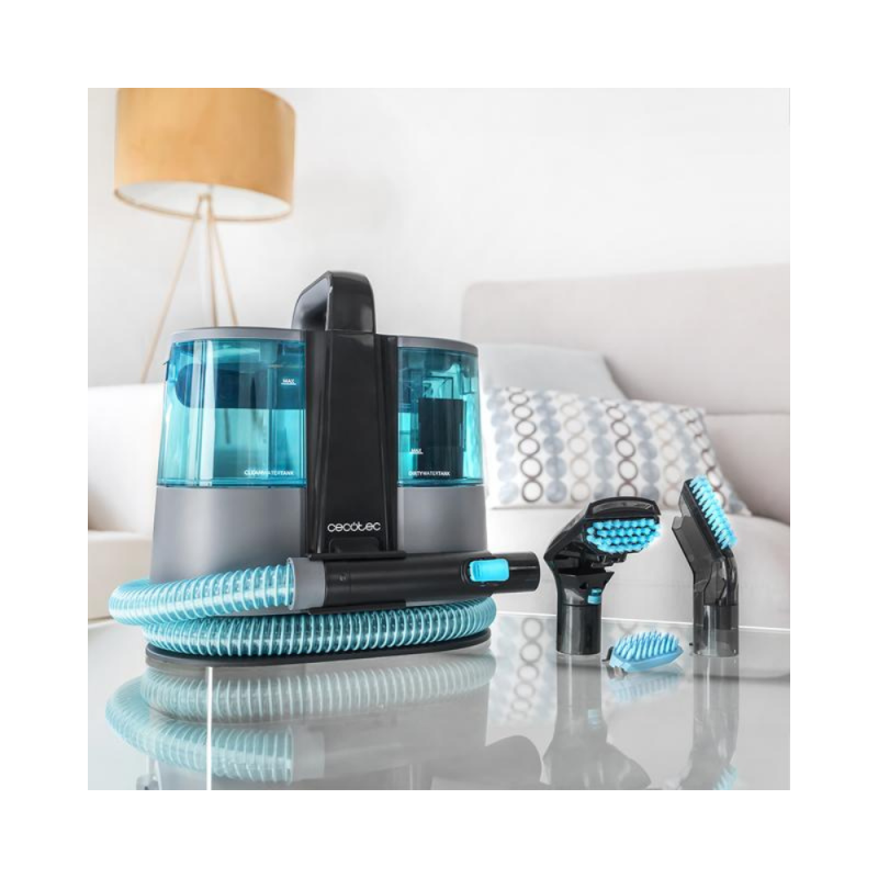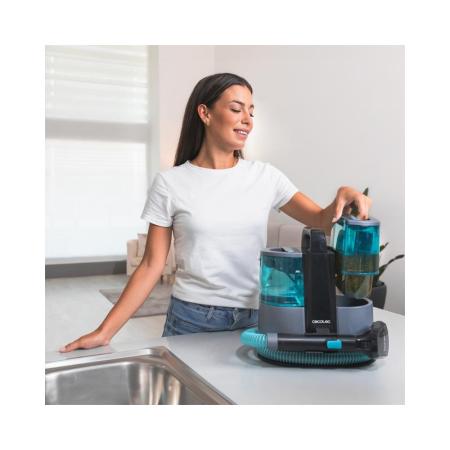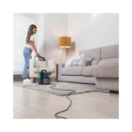 Sesalnik za oblazinjeno pohištvo s funkcijo 3 v 1: razpršite, očistite in posesajte. Vključuje sistem za pršenje vode, za enostavno doziranje pretoka vode in prilagajanje količine vode vrsti površine.