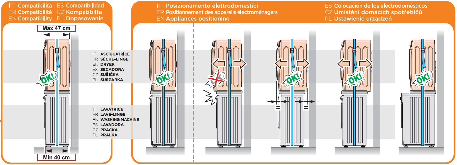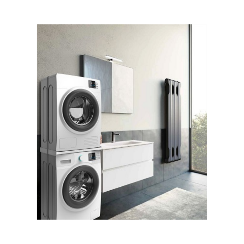 Univerzalni vezni člen za pralni in sušilni stroj BASE TORRE SLIM L45 iz belega tehnopolimera, izdelan v Italiji. Dimenzije (Š x G) 60 x 43,5 cm. Priložen je varnostni pas s kovinsko zaponko. Združljiv je z večino pralnih in sušilnih strojev s sprednjim polnjenjem, širine 60 cm in globine do 46 cm. Največja nosilna teža: 250 kg. Omogoča pridobivanje prostora tako, da sušilni stroj postavite na pralni stroj. Ojačana ultra močna tehnopolimerna struktura daje aparatom stabilnost. Je v naprej sestavljen, zato je namestitev hitra in enostavna.